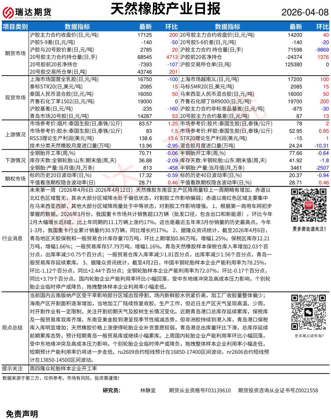 2026-04-08瑞达期货天然橡胶产业日报20260408
