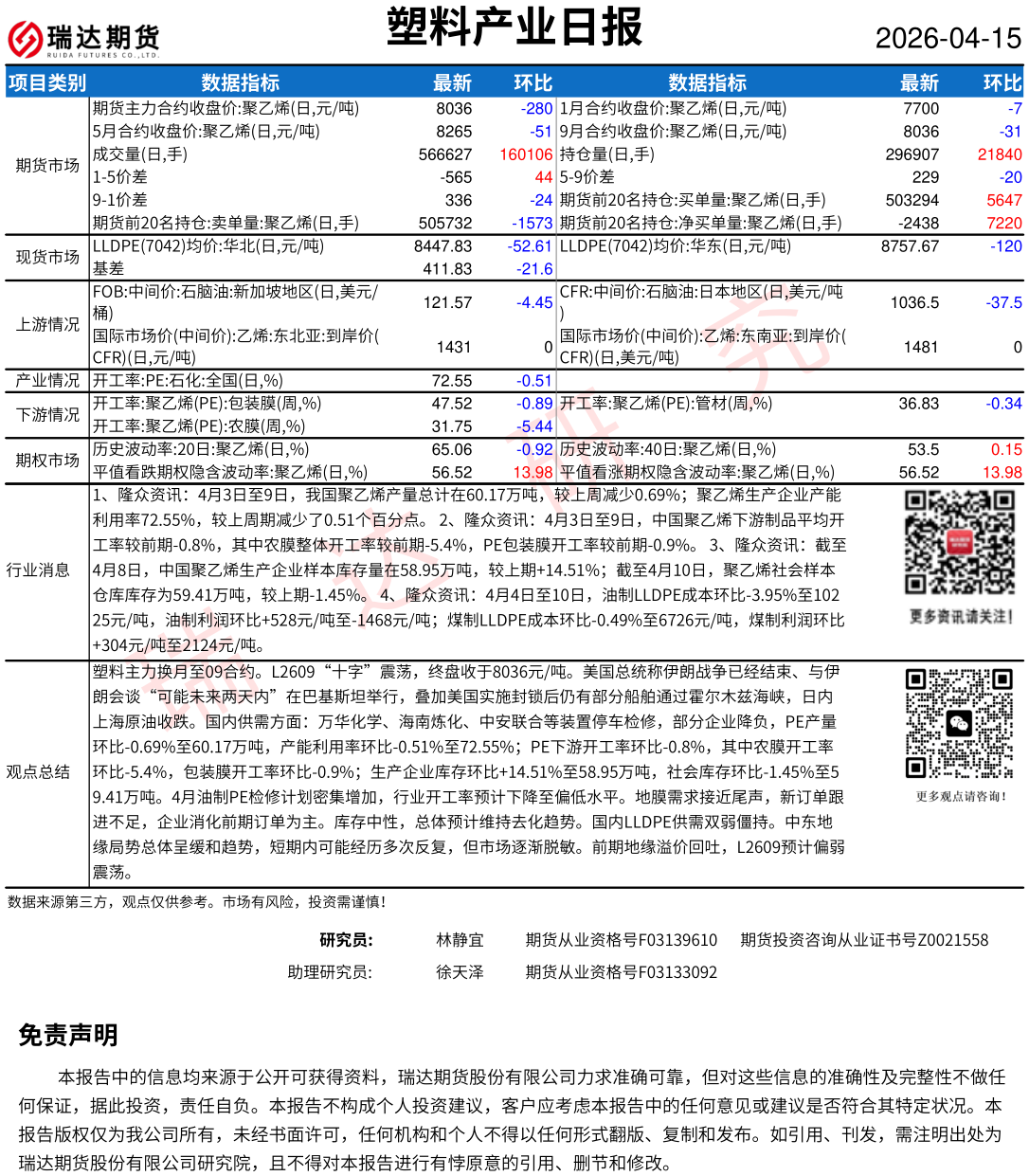 2026-04-15瑞达期货天然橡胶产业日报20260415