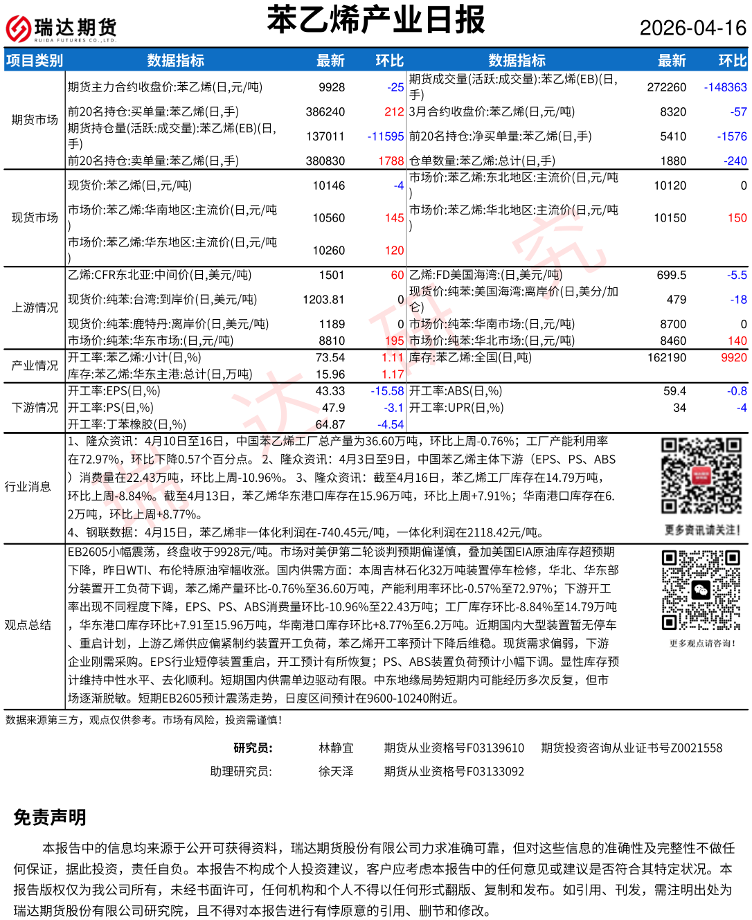 2026-04-16瑞达期货天然橡胶产业日报20260416