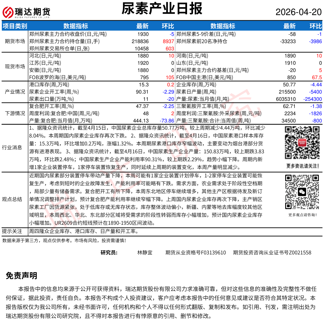 2026-04-20瑞达期货塑料产业日报20260420