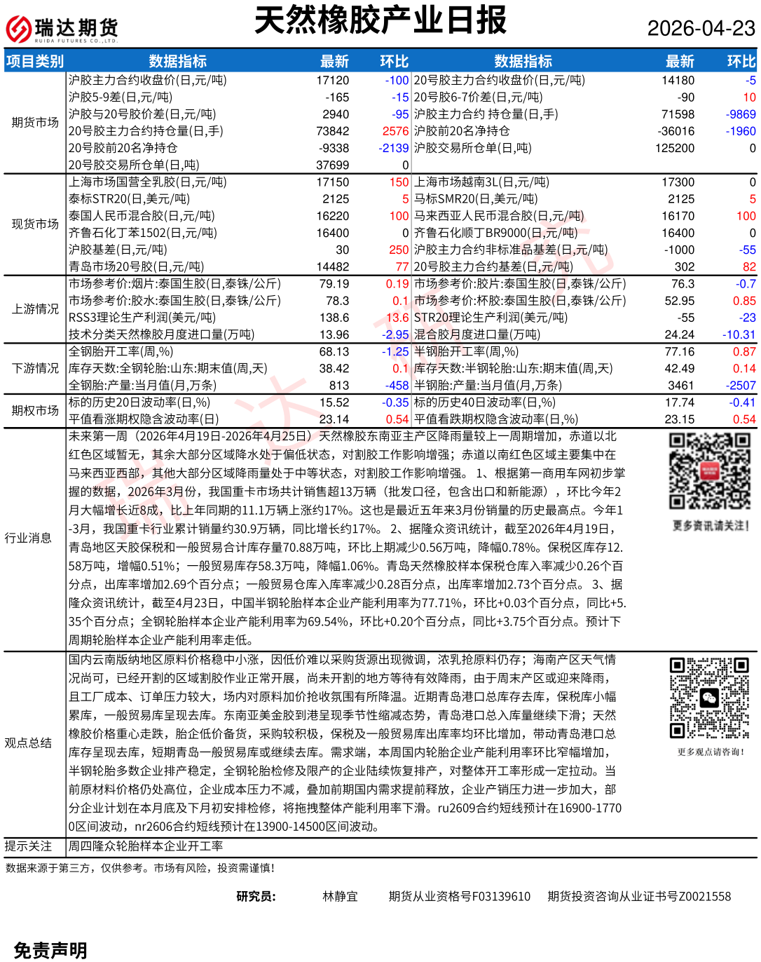 2026-04-23瑞达期货天然橡胶产业日报20260423