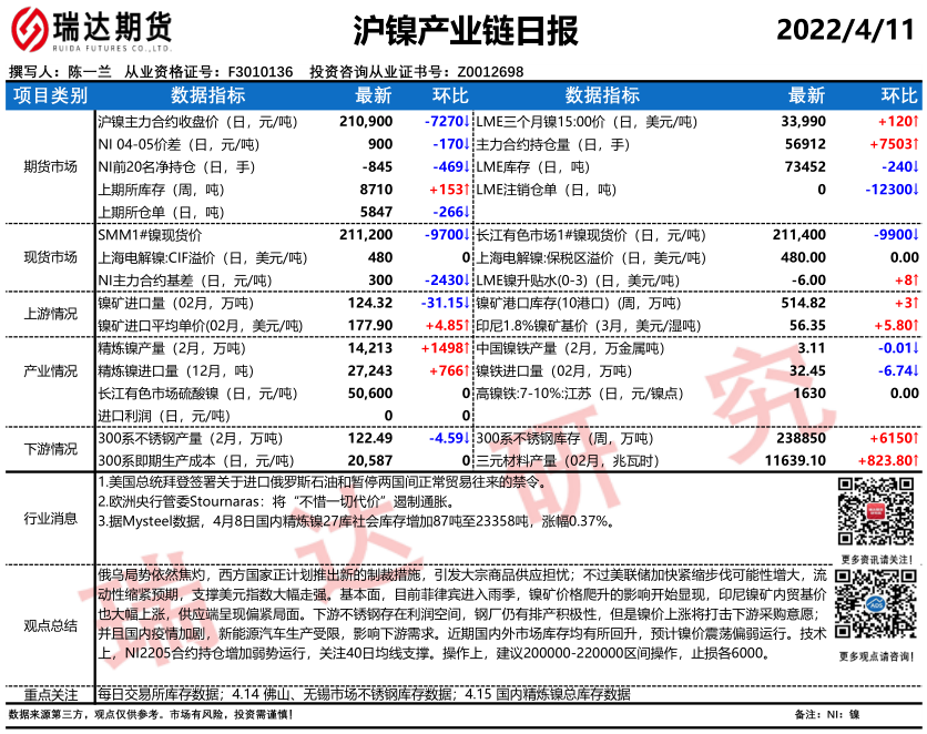 2026-04-08瑞达期货沪镍产业日报20260408