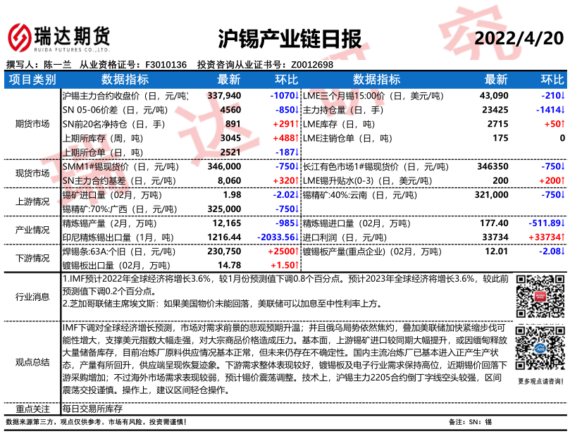 2026-04-08瑞达期货沪锡产业日报20260407