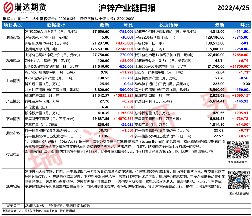 2026-04-08瑞达期货沪锌产业日报20260407