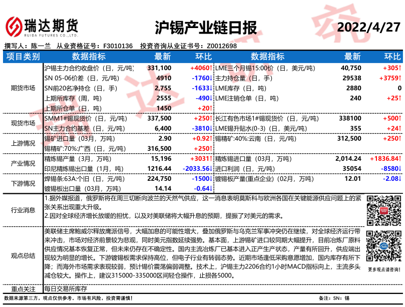 2026-04-08瑞达期货沪锡产业日报20260407