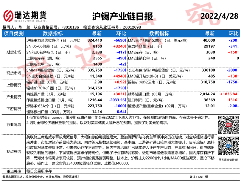 2026-04-08瑞达期货沪锡产业日报20260407