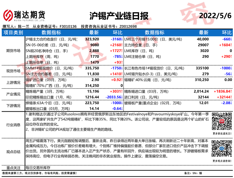 2026-04-08瑞达期货沪锡产业日报20260407