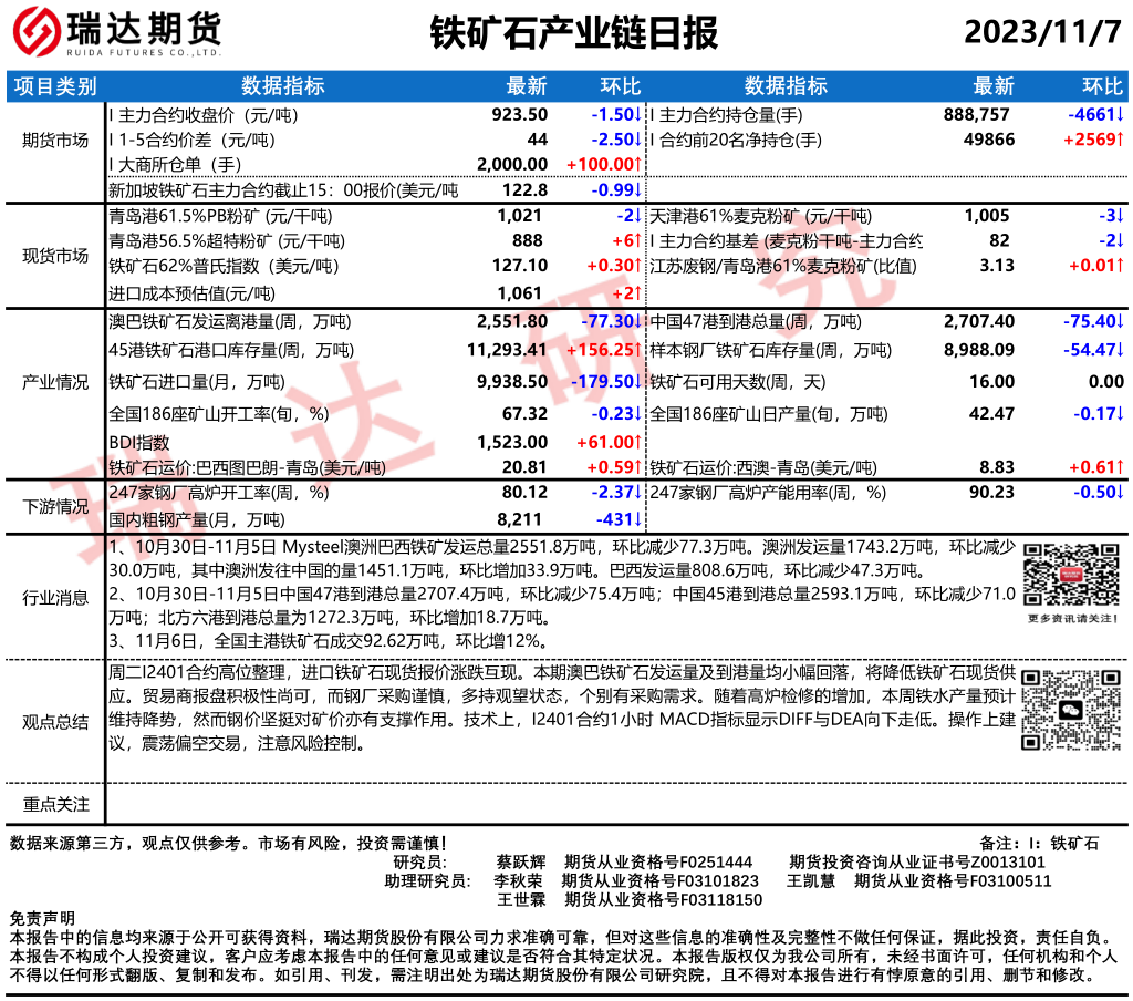 2025-12-23瑞达期货铁矿石产业日报20251223