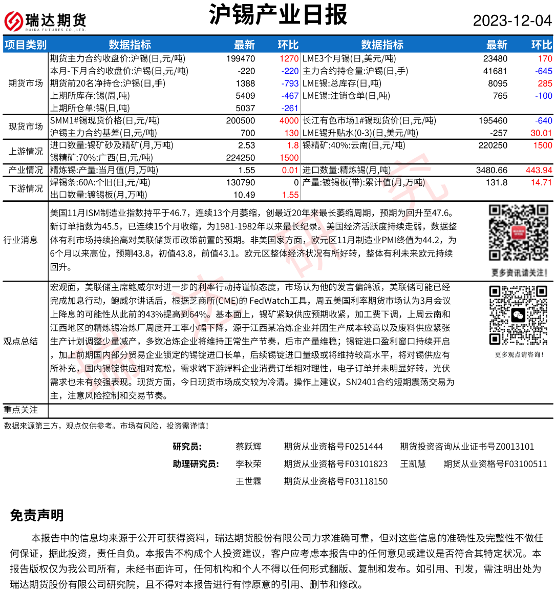 2025-12-24瑞达期货沪锡产业日报20251224