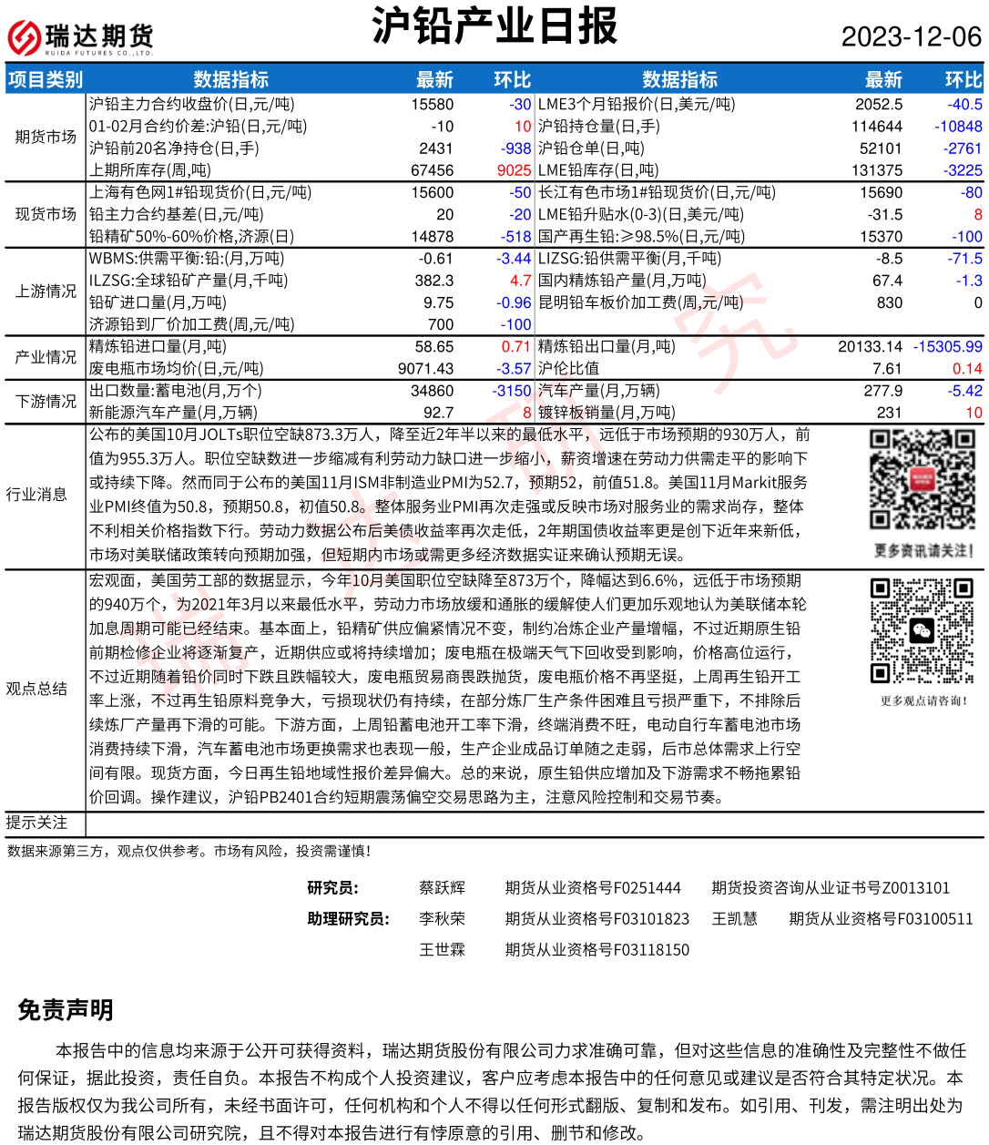 2025-12-24瑞达期货沪锡产业日报20251224