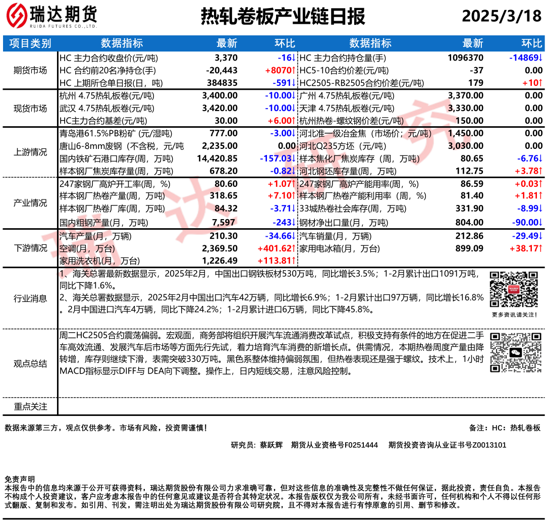 2025-12-17瑞达期货热卷产业日报20251217