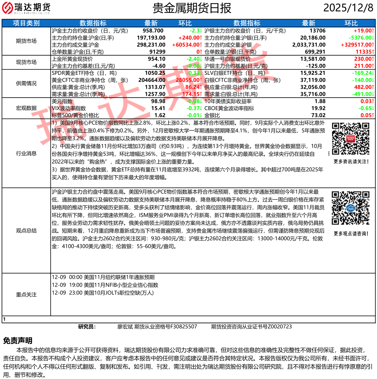 2025-12-18瑞达期货贵金属市场每日全景分析报告20251218