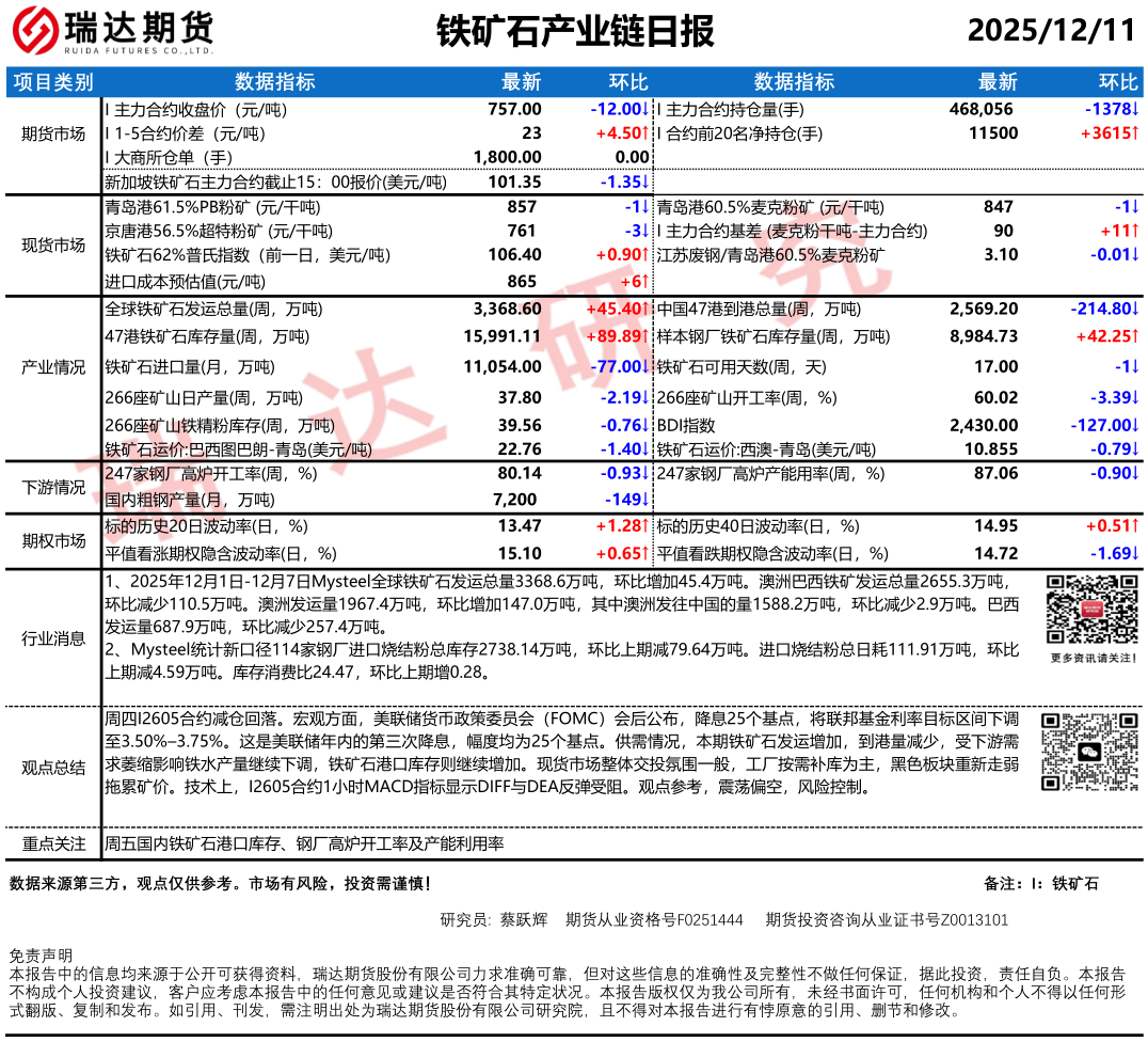 2025-12-11瑞达期货铁矿石产业日报20251211