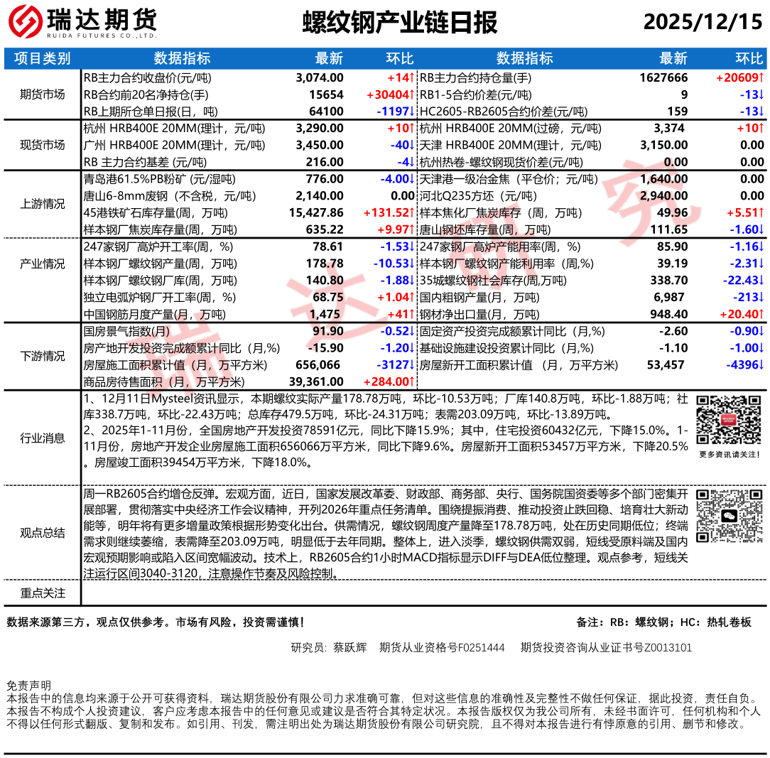 2025-12-17瑞达期货铁矿石产业日报20251217