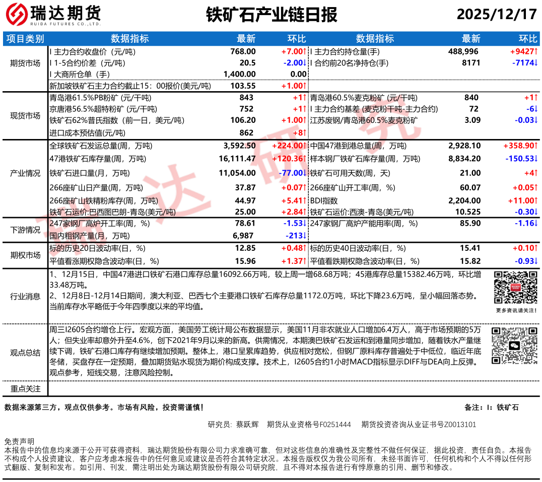 2025-12-17瑞达期货铁矿石产业日报20251217