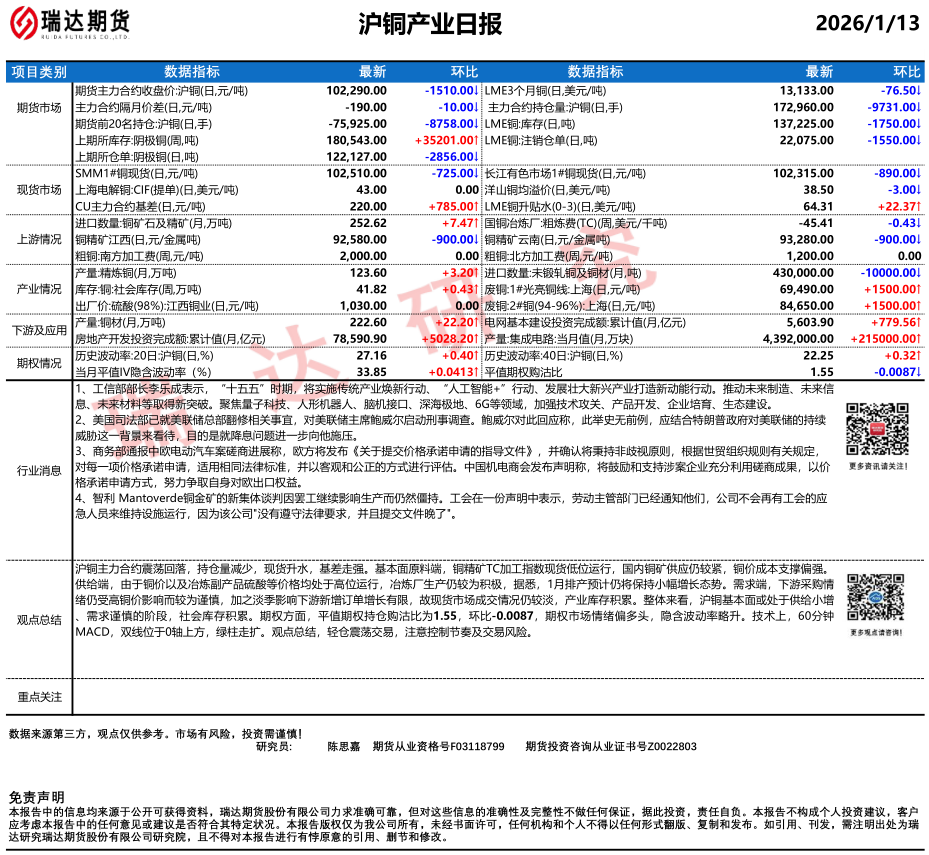2026-01-13瑞达期货沪锡产业日报20260113