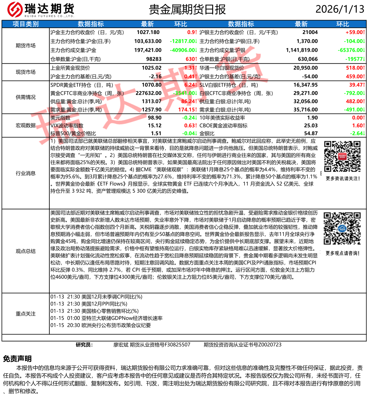 2026-01-13瑞达期货沪锡产业日报20260113
