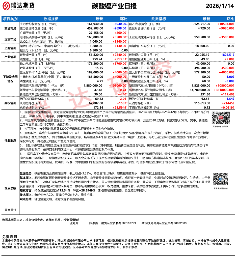 2026-01-15瑞达期货碳酸锂产业日报20260115