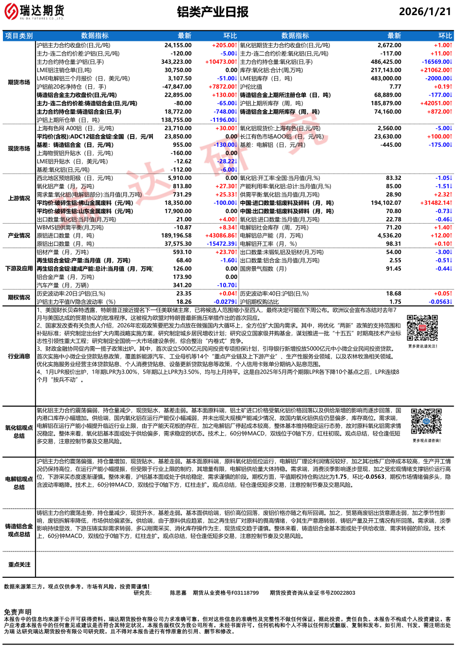 2026-01-26瑞达期货贵金属市场每日全景分析报告20260126