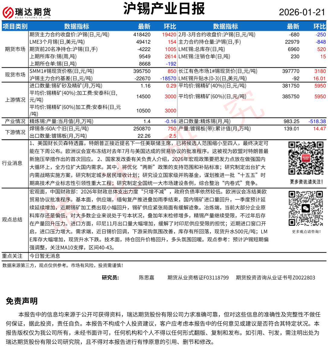2026-01-26瑞达期货铂钯金市场每日全景分析报告20260126