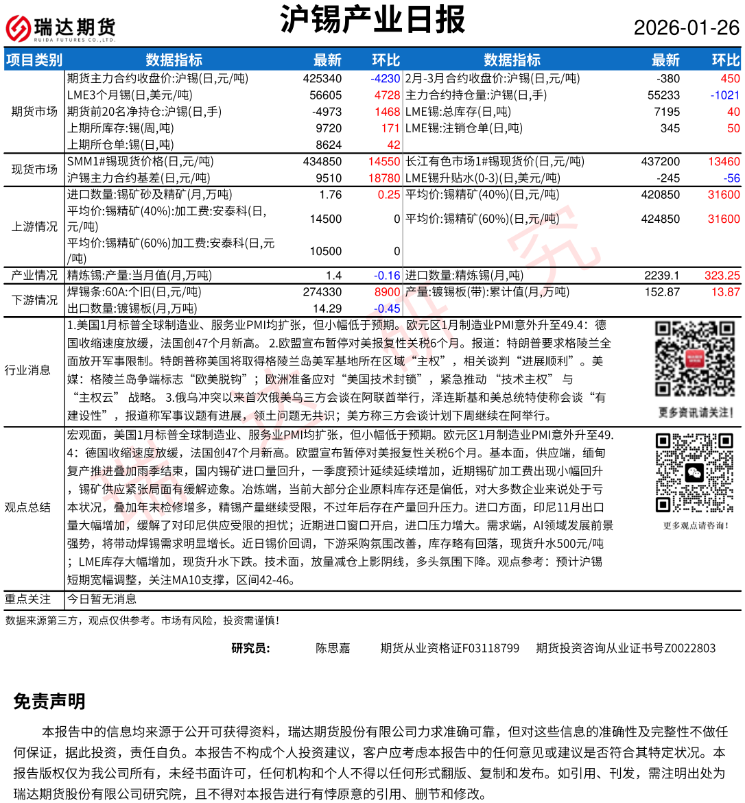 2026-01-26瑞达期货铂钯金市场每日全景分析报告20260126