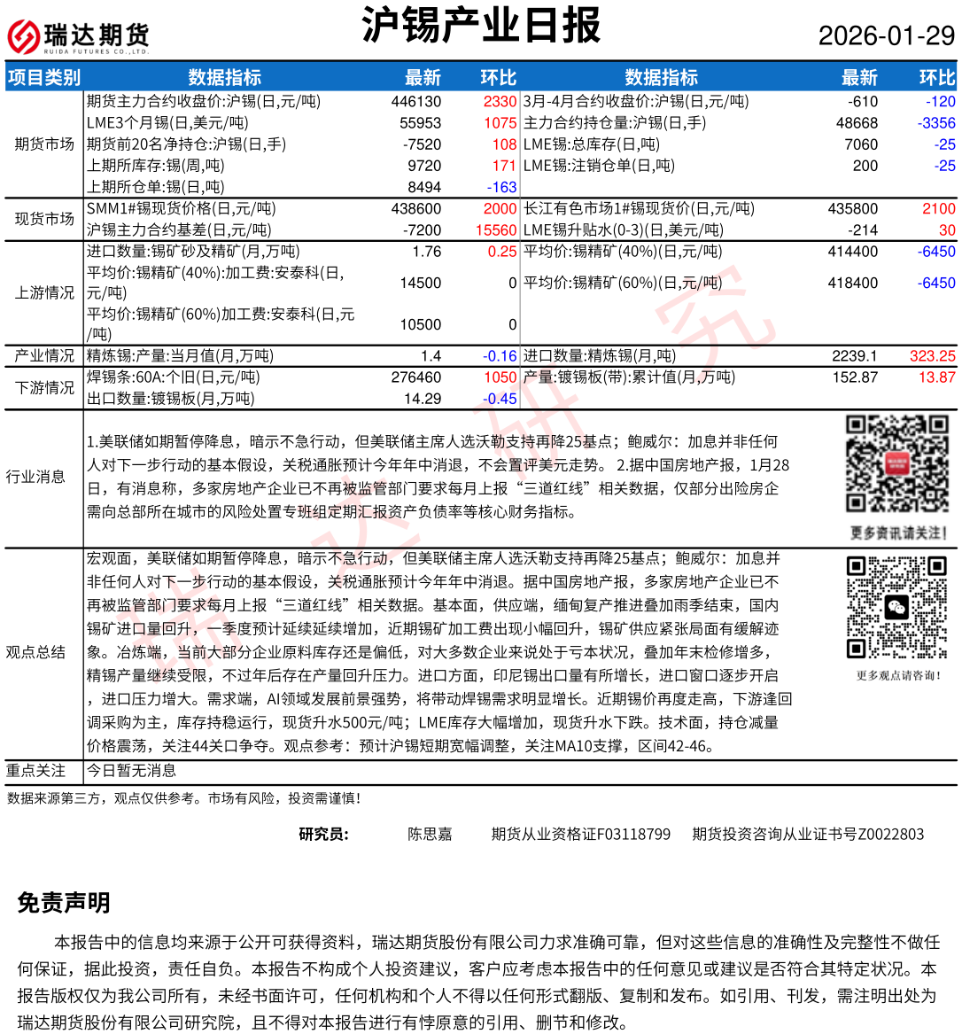 2026-01-30瑞达期货沪锡产业日报20260129