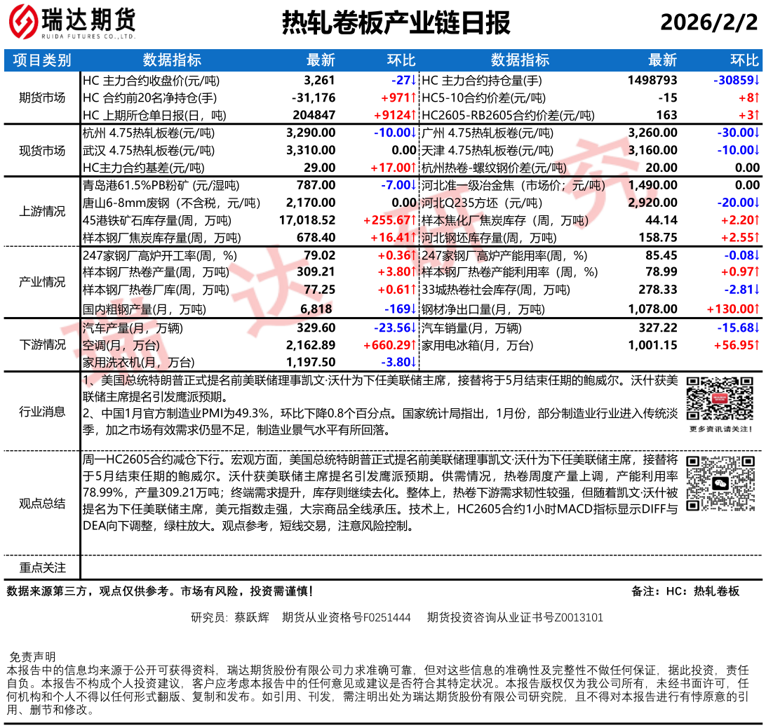2026-02-06瑞达期货焦煤焦炭产业日报20260205