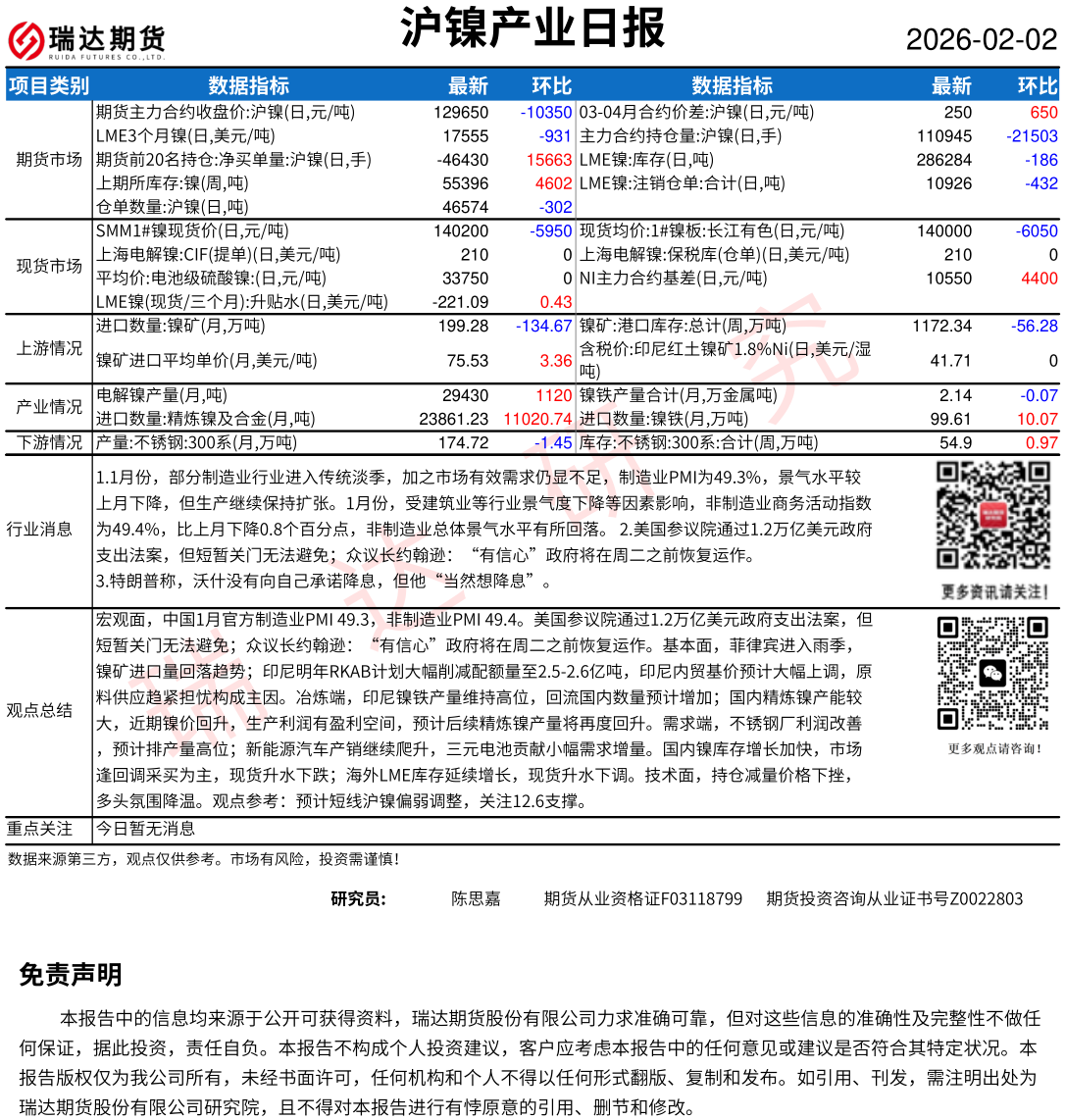 2026-02-02瑞达期货沪锡产业日报20260202