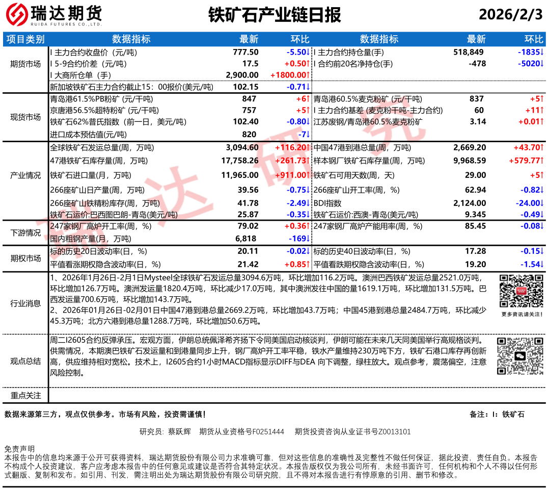 2026-02-06瑞达期货焦煤焦炭产业日报20260205