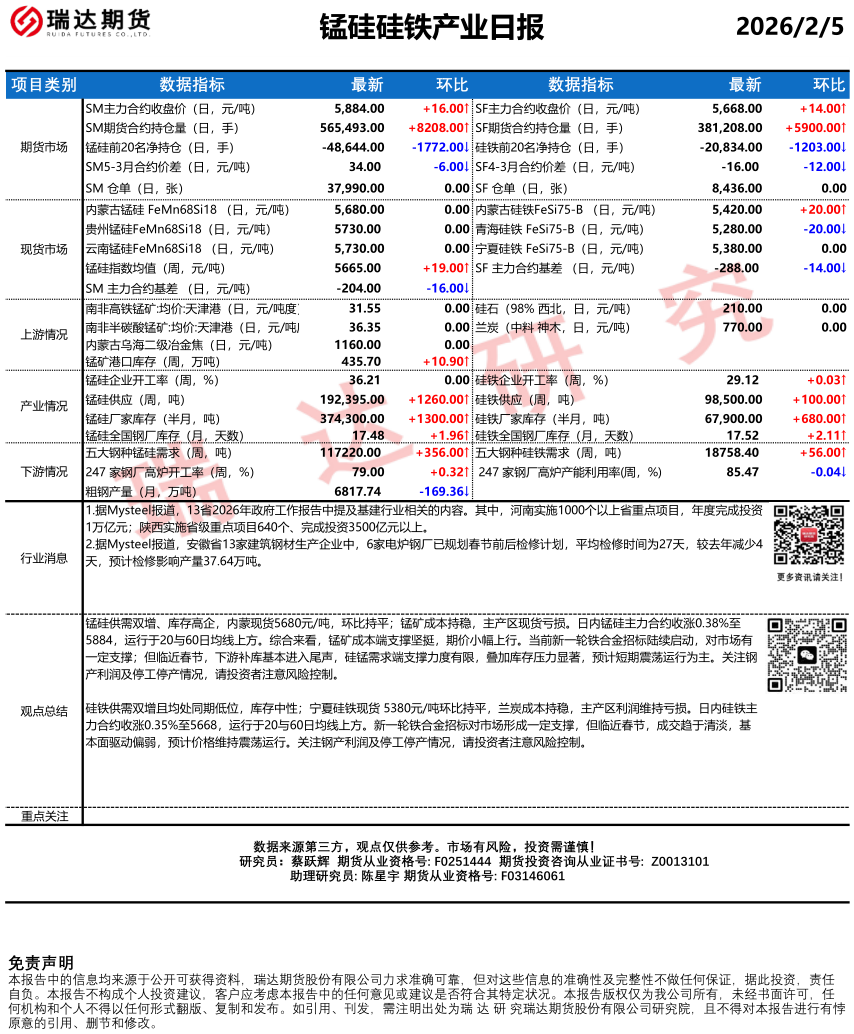2026-02-06瑞达期货锰硅硅铁产业日报20260205