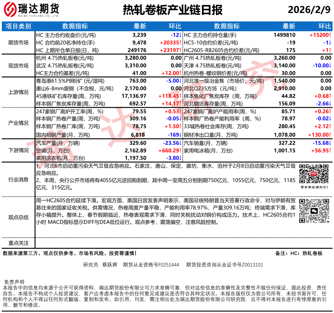 2026-02-09瑞达期货热卷产业日报20260209
