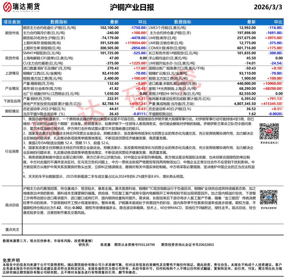 2026-03-04瑞达期货沪锡产业日报20260303
