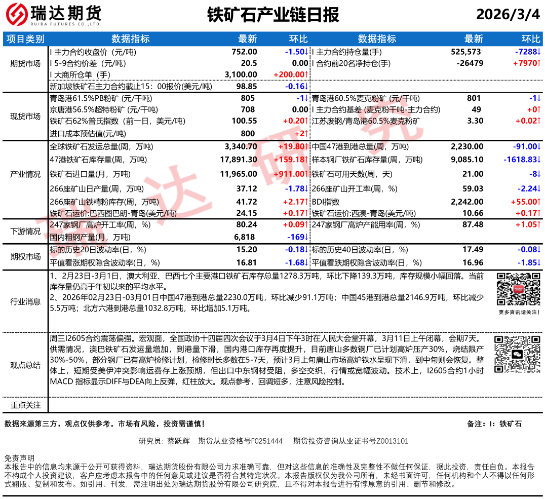 2026-03-04瑞达期货焦煤焦炭产业日报20260304
