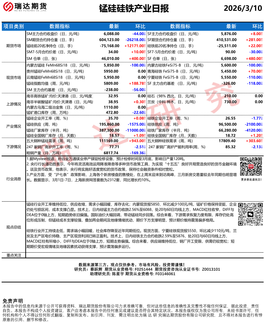 2026-03-10瑞达期货锰硅硅铁产业日报20260310