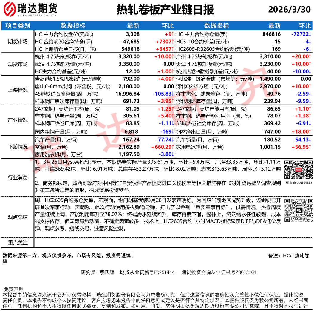 2026-03-31瑞达期货焦煤焦炭产业日报20260330
