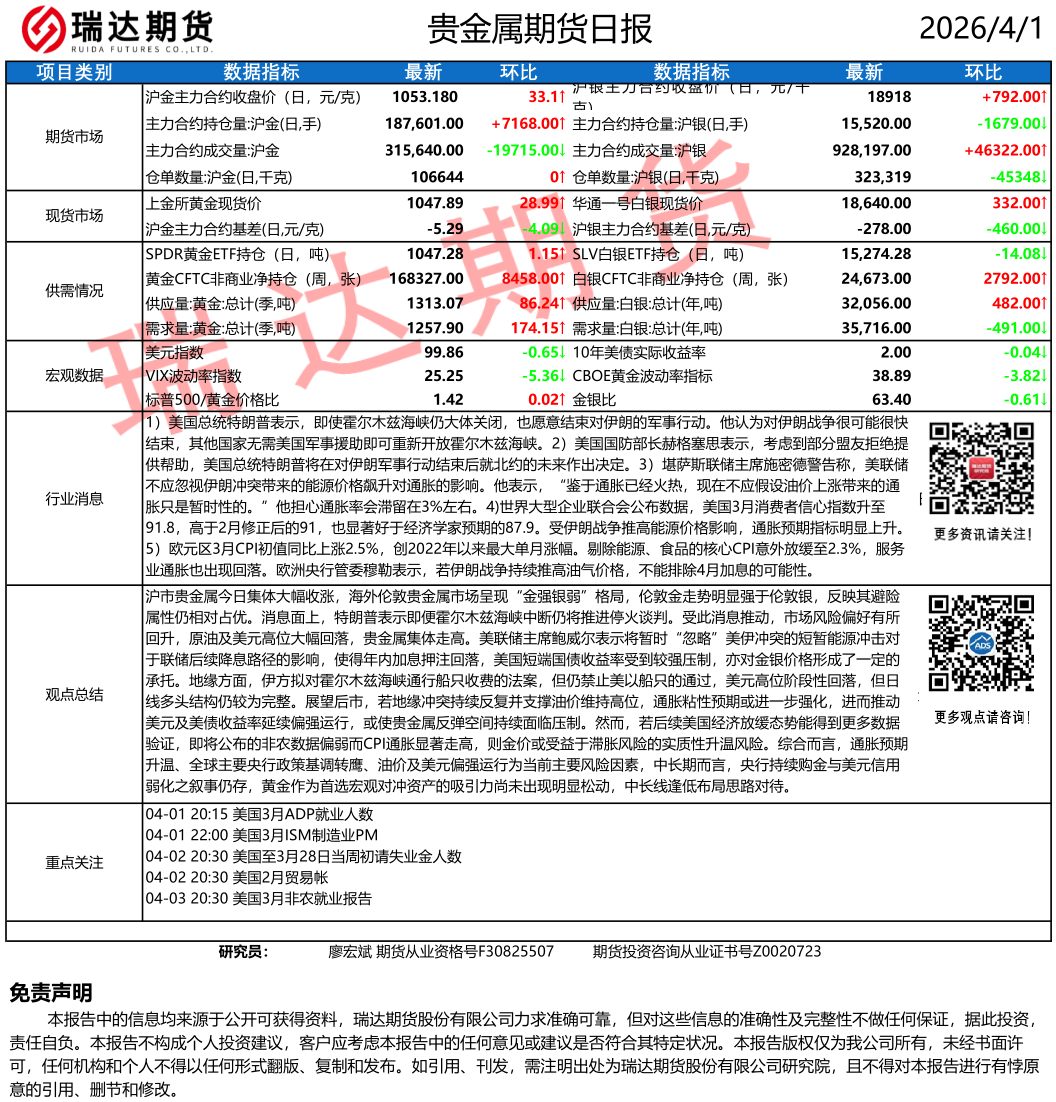 2026-04-02瑞达期货贵金属市场每日全景分析报告 20260402