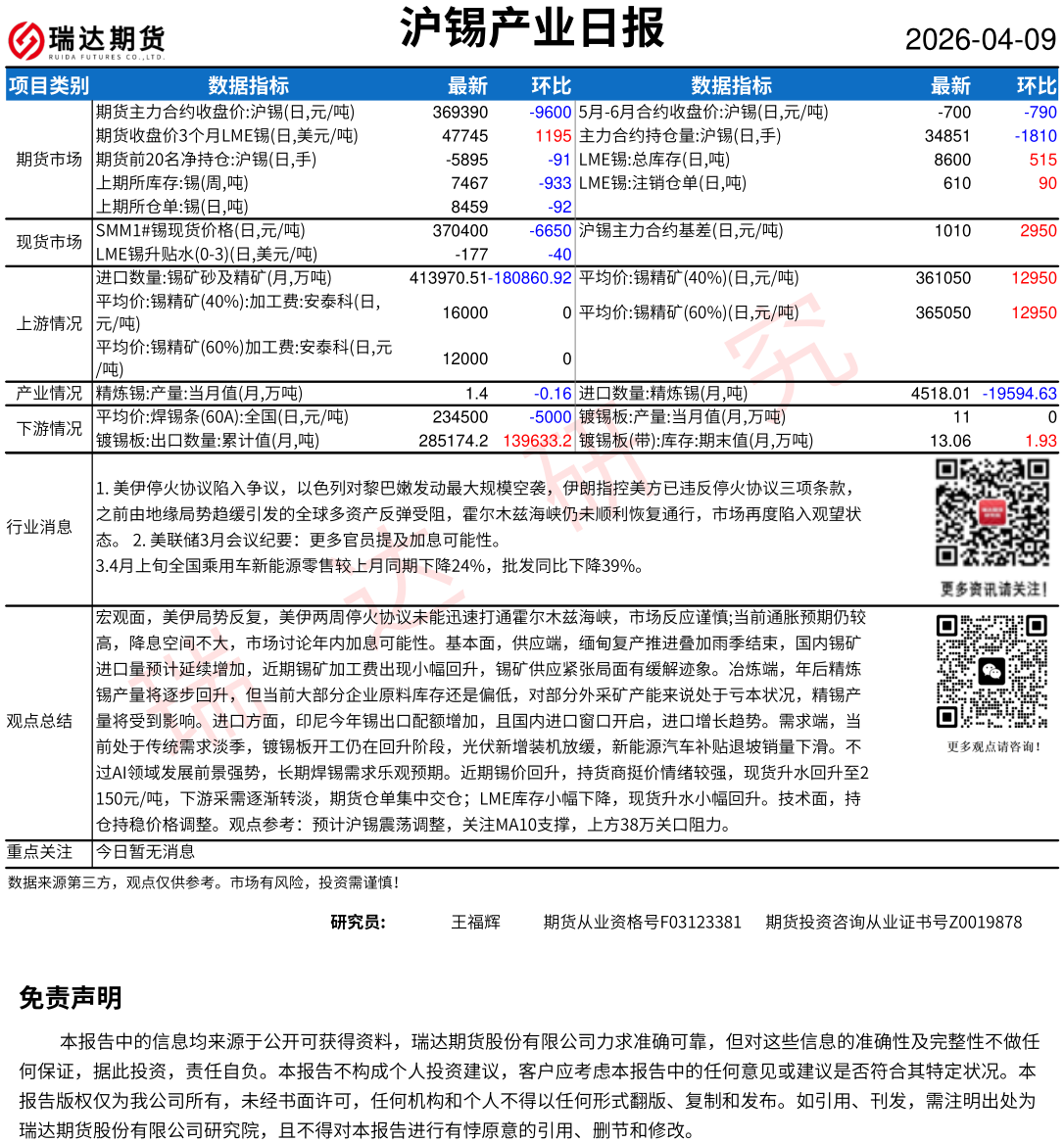 2026-04-10瑞达期货沪锡产业日报20260409