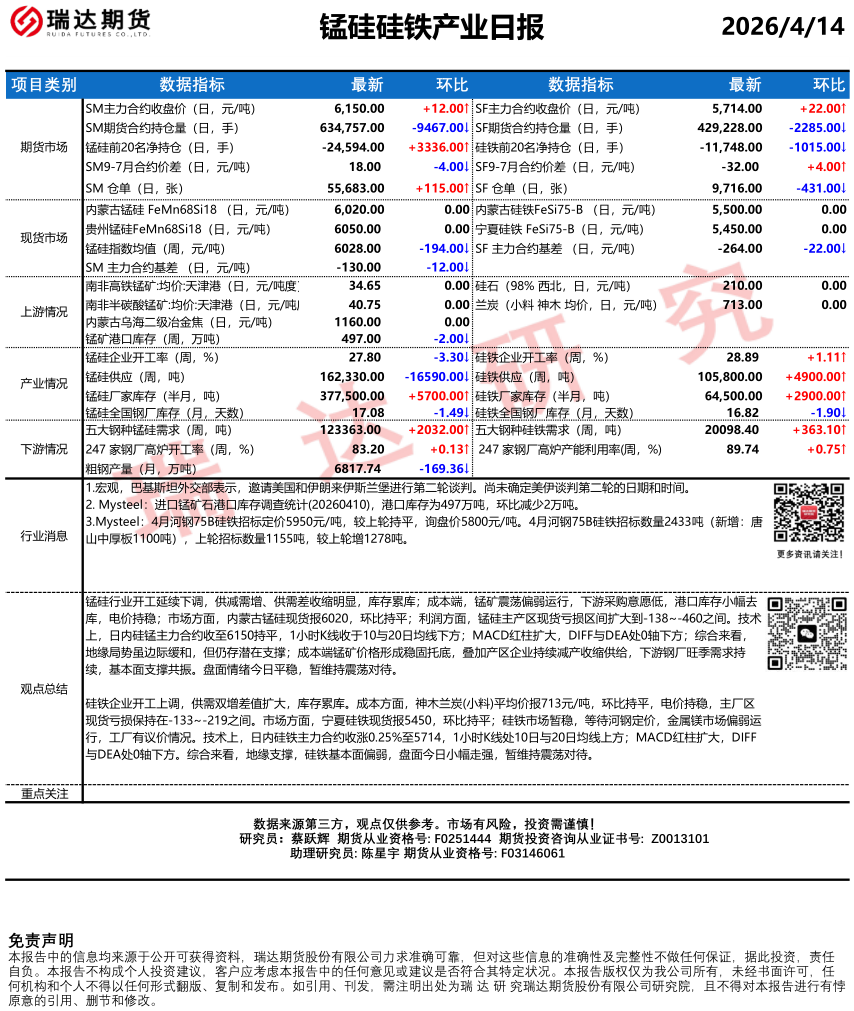 2026-04-14瑞达期货沪锡产业日报20260414