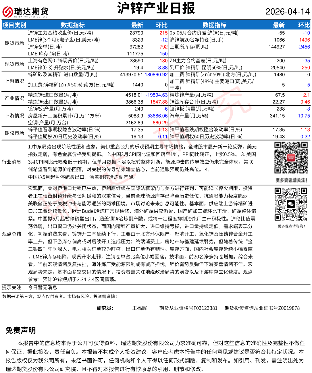 2026-04-14瑞达期货沪锌产业日报20260414
