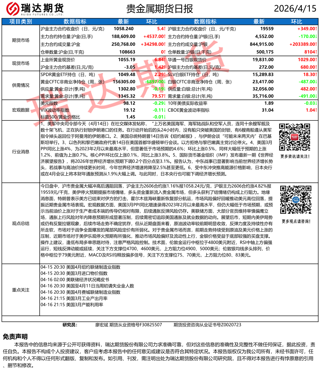 2026-04-15瑞达期货沪锡产业日报20260415