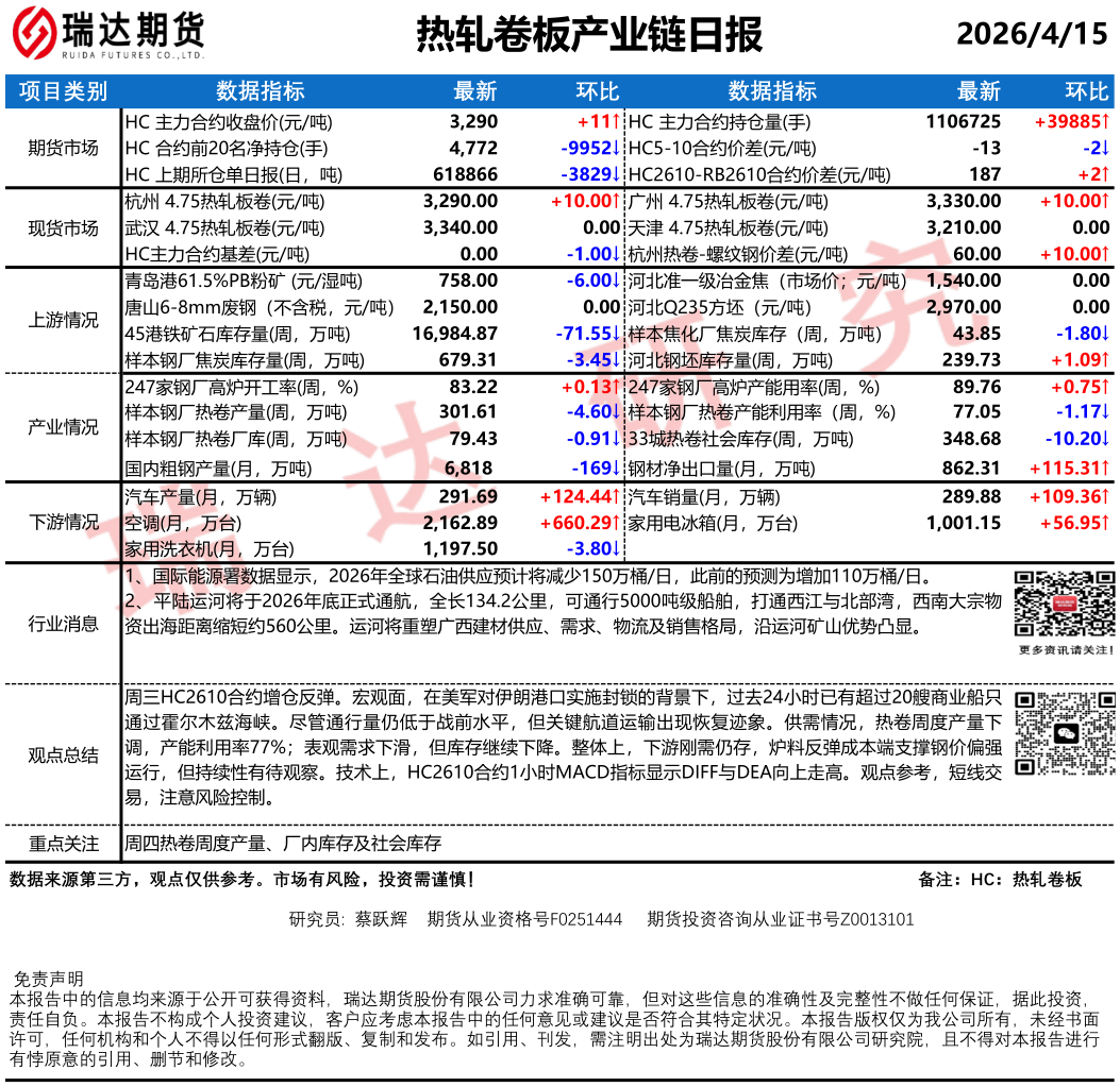 2026-04-15瑞达期货沪锡产业日报20260415