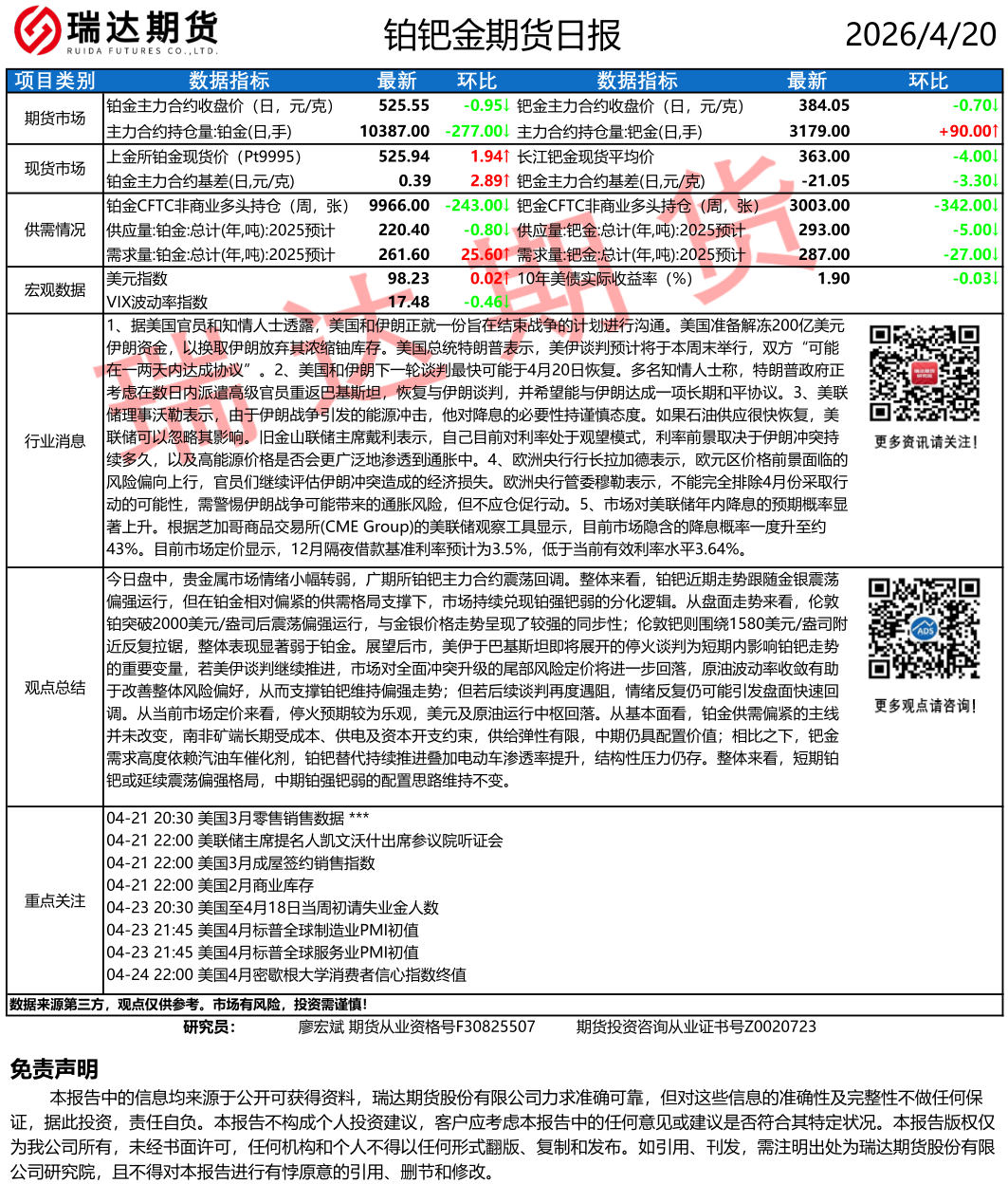 2026-04-20瑞达期货铁矿石产业日报20260420