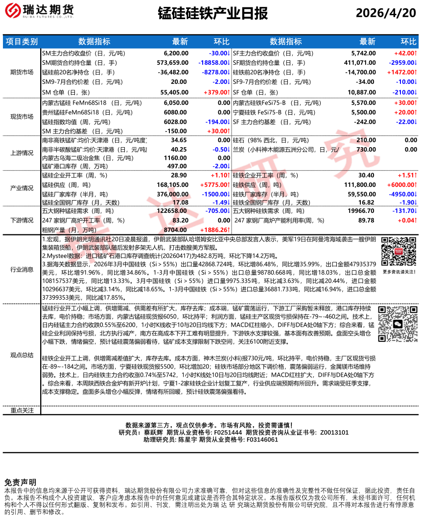 2026-04-20瑞达期货铁矿石产业日报20260420
