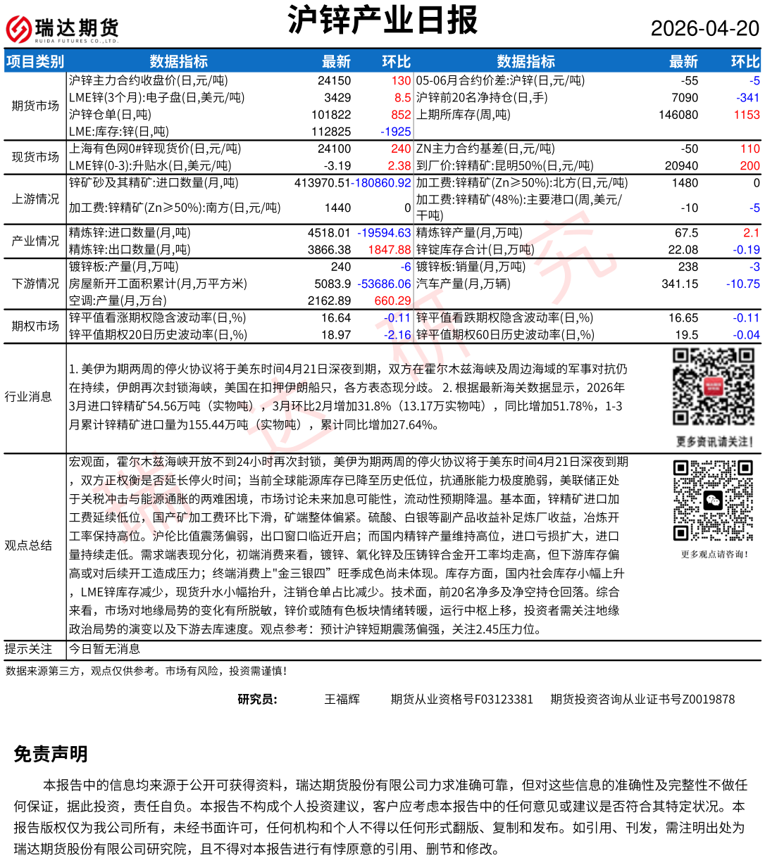 2026-04-20瑞达期货铁矿石产业日报20260420