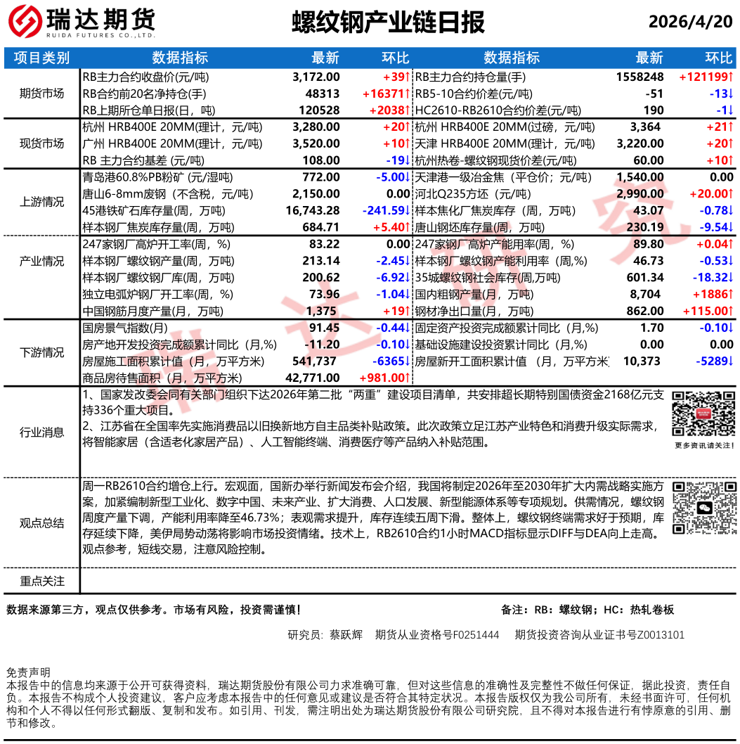 2026-04-20瑞达期货铁矿石产业日报20260420