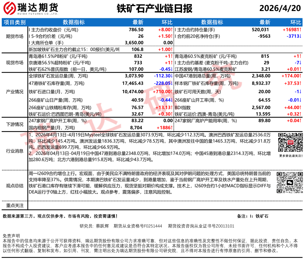 2026-04-20瑞达期货铁矿石产业日报20260420