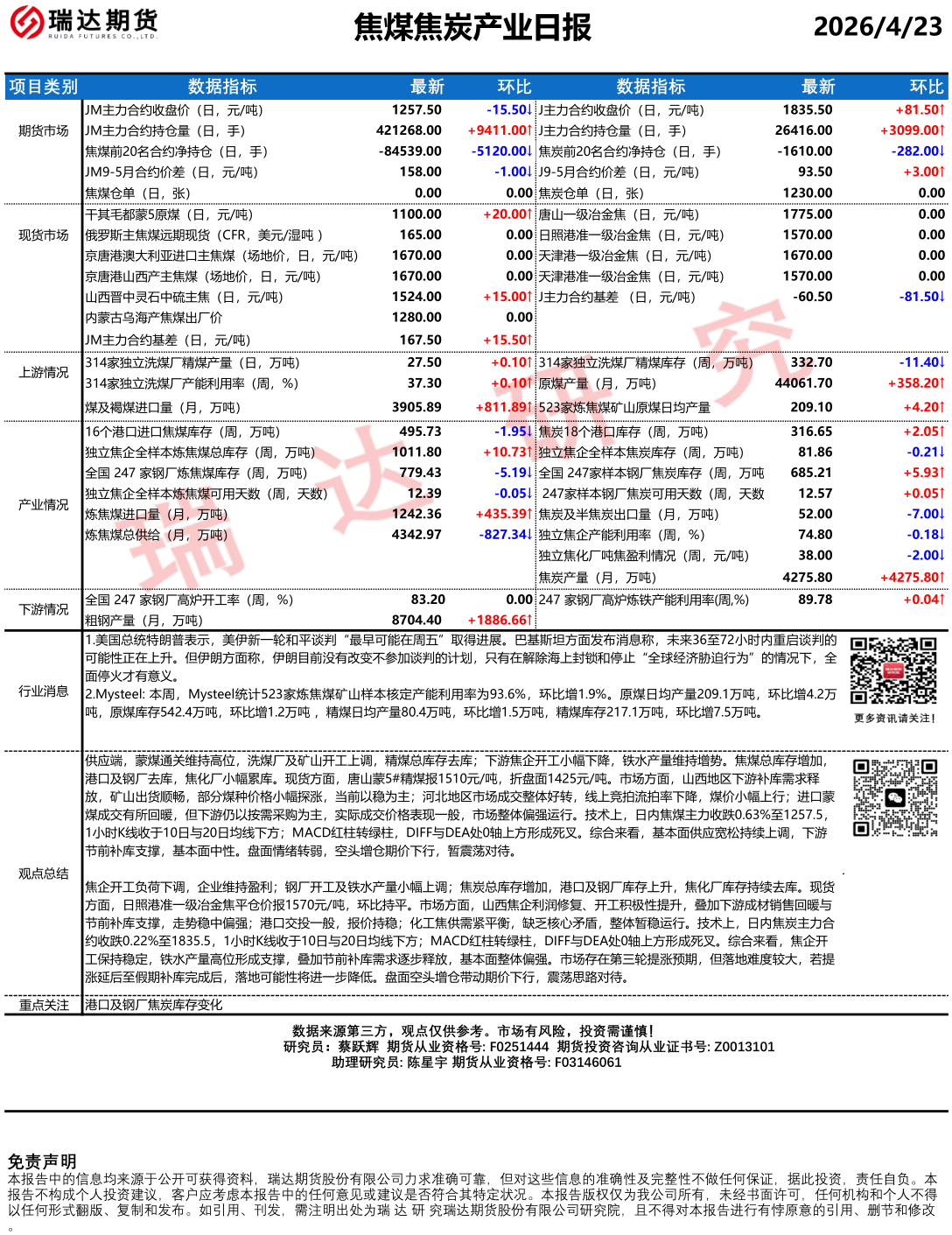 2026-04-23瑞达期货铁矿石产业日报20260423