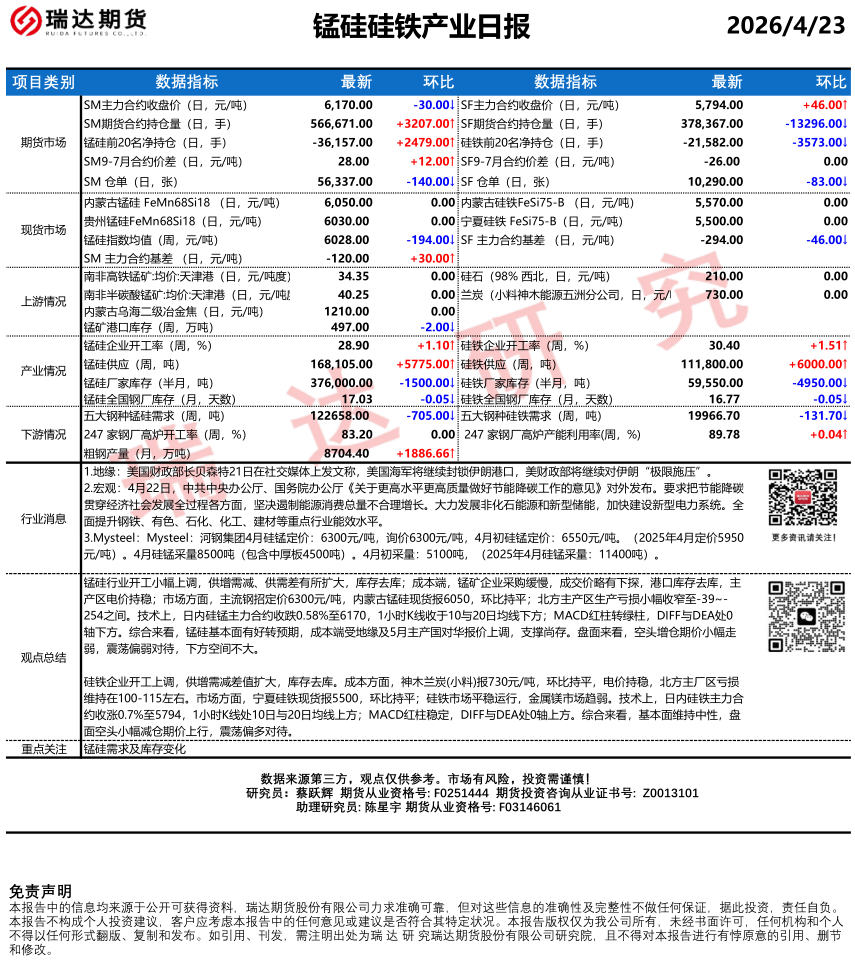 2026-04-23瑞达期货热卷产业日报20260423