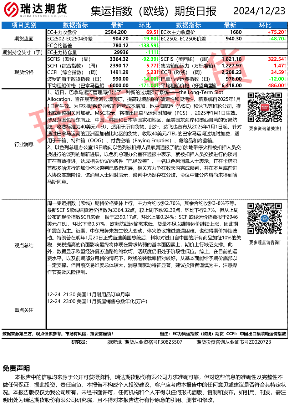 2025-12-04瑞达期货集运指数(欧线)期货市场每日全景分析报告202451204
