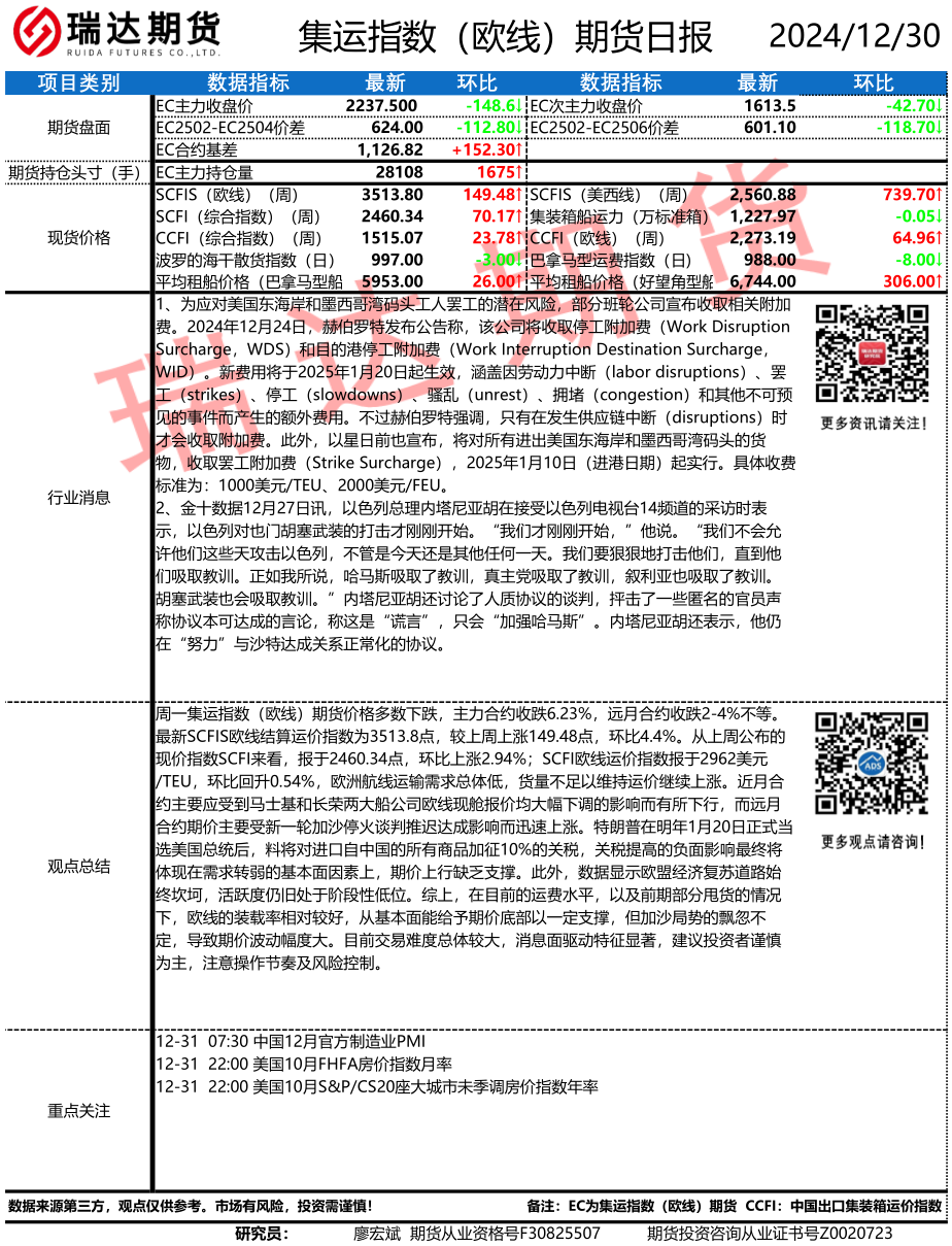 2025-12-04瑞达期货集运指数(欧线)期货市场每日全景分析报告202451204